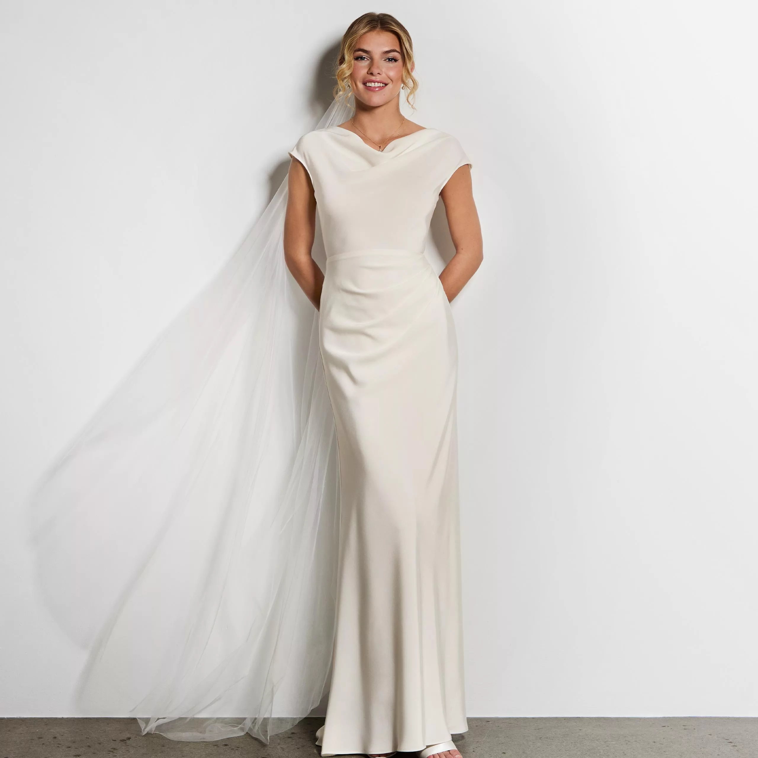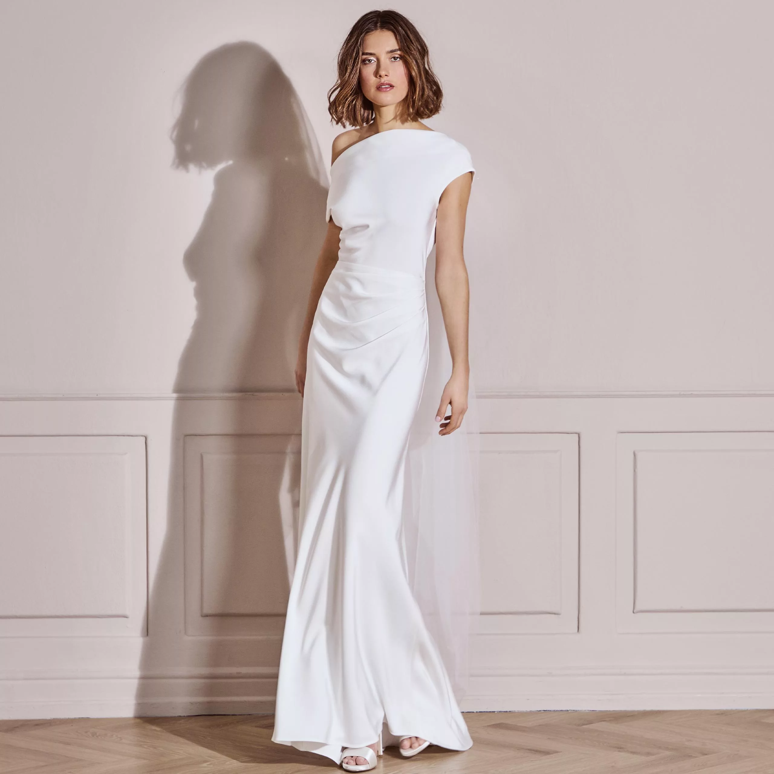 Voici encore une robe bien différente de la collection Lilly. Cette création est réalisée en crêpe. les épaules sont libres. Vous pouvez donc les porter en symétrie ou en asymétrie.