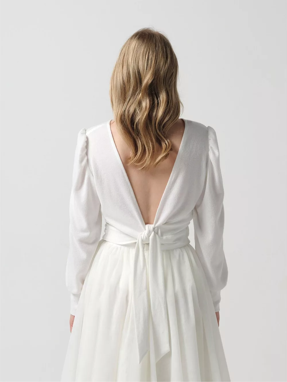 T-134 – Haut cache-cœur avec dos échancré et manches longues